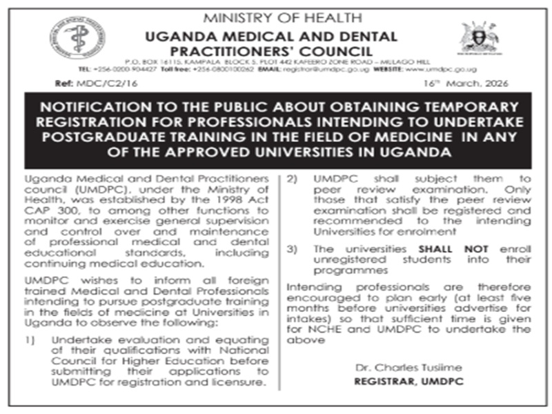 Thank you for visiting our website and greetings from the Uganda Medical and Dental Practitioners Council. Thank you for visiting our website and greetings from the Uganda Medical and Dental Practitioners Council.